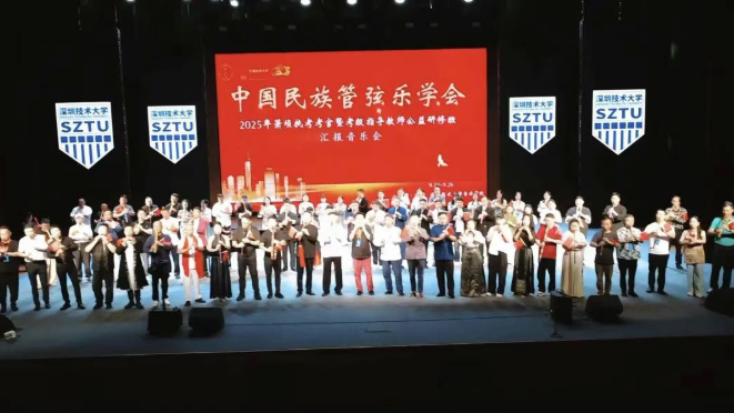 2025年9月22日至26日,由中国民族管弦乐学会主办、深圳技术大学音乐学院承办、深圳福田现代青年国乐团协办的“中国民族管弦乐学会2025箫埙执考考官暨考级指导教师公益研修班”在深圳技术大学成功举办。本次活动汇聚了全国80名箫埙从业者,通过名家讲座、技法精研、汇报音乐会等形式,系统推进箫埙艺术的教学与创新性传承。