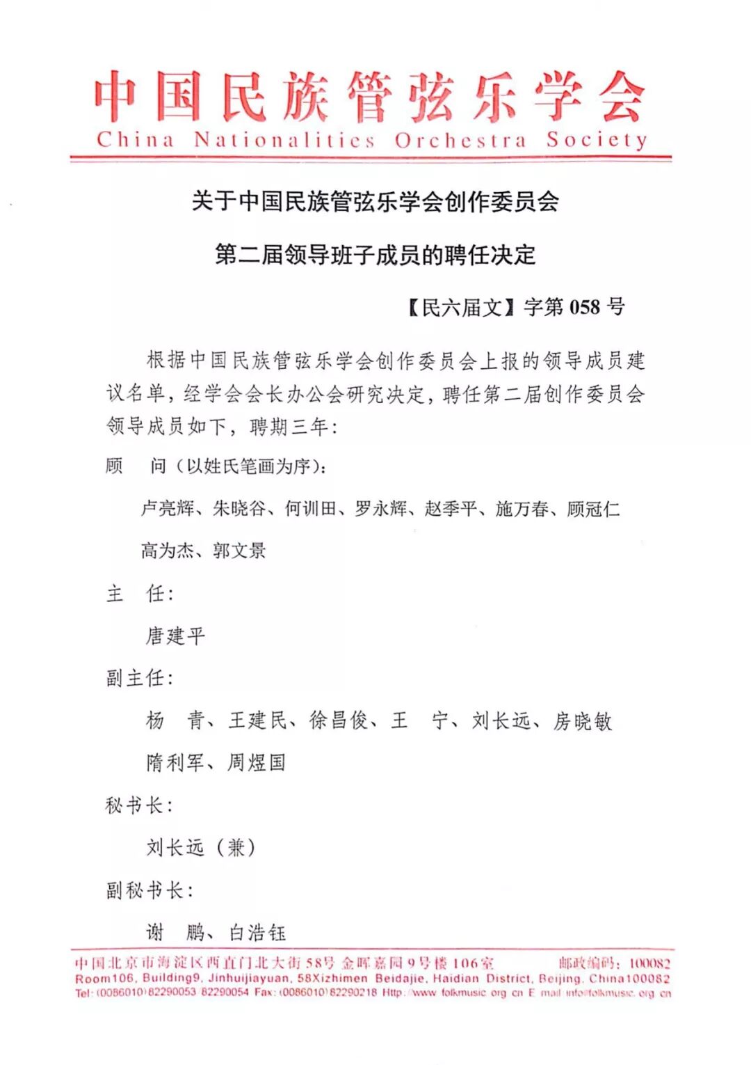 附:中国民族管弦乐学会第二届创作委员会委员以上成员名单: