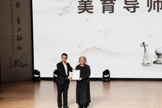 活动现场,上海交通大学自动化与感知学院党委副书记周全为民乐大师代表王鹏先生颁发“学生美育导师”聘书,体现了优秀民乐艺术家深度参与校园文化建设、身体力行美育理念,滋养高校学子心灵的社会担当。
