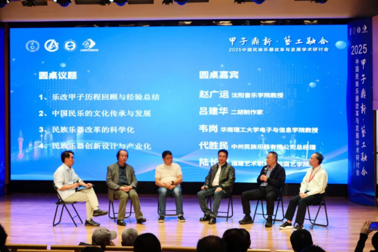 圆桌论坛由交大自动化与感知学院副研究员卢艺主持,涵盖来自艺术类高校、理工类高校、民乐企业、民乐资深从业者的多方代表,聚焦“中国民乐改革智能化发展与产业创新”这一大会议题。圆桌论坛达成了对中国民乐发展历程的重要共识:当下我们正身处一个内外形势都正在经历深刻变革的时代,科技发展日新月异、文化交融空前频繁。回望中国民族乐器改革事业近一个甲子的历程,这是一段在坚守中开拓、在传承中创新、非常不平凡的奋斗史。