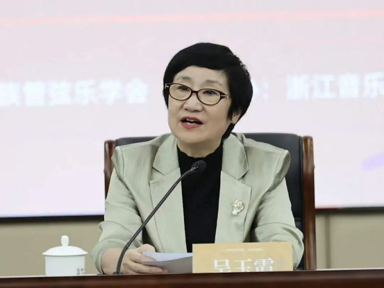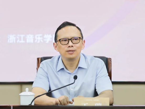 王瑞代表浙音对与会专家及学员的到来表示欢迎,对中国民族管弦乐学会的信任表示感谢。他深入阐述了新时代发展和传播中国民族音乐的重大意义,并重点介绍了浙音在民族音乐教育和研究方面的成果,特别是2020年成立的民族乐队学院。该学院以推动教学改革、培养合奏人才、探索中国民族器乐独立艺术品格为目标,通过“舞台即教室”的课程改革,突破传统教学模式 ,构建起一套“职业化培养体系”。他认为,在全球化与人工智能迅速发展的时代背景下,真正的音乐具有不可替代的价值,我们应坚守初心、守正创新,探索中国民族音乐独立的审美品格与话语体系。他呼吁学员珍惜与专家面对面交流的机会,深入思考中国民族管弦乐的未来发展路径,共同努力推动中国民族音乐事业繁荣发展。