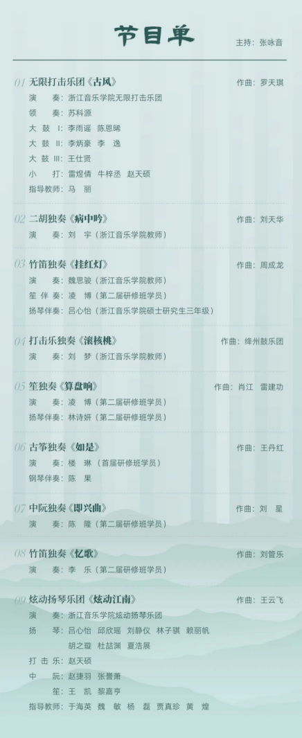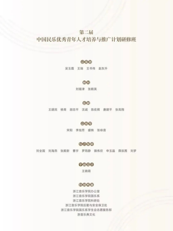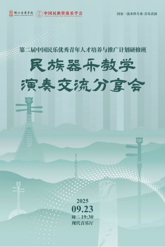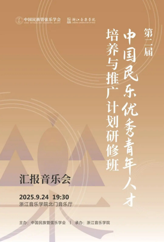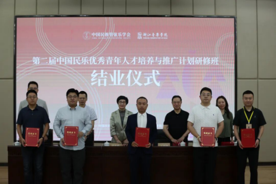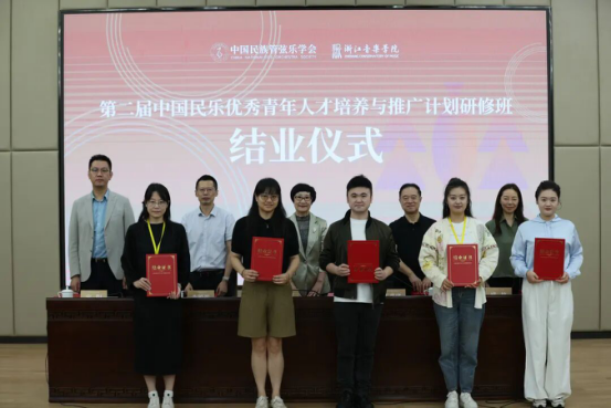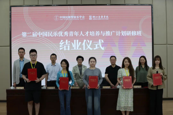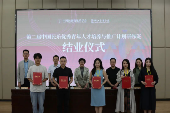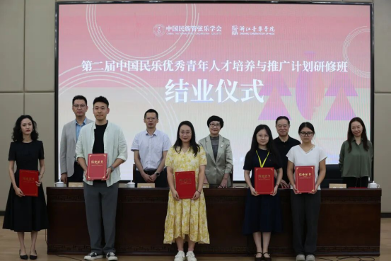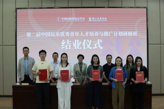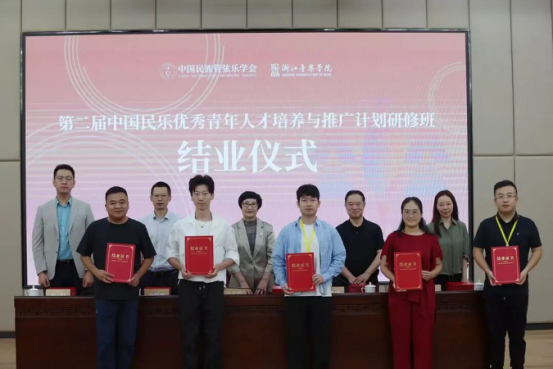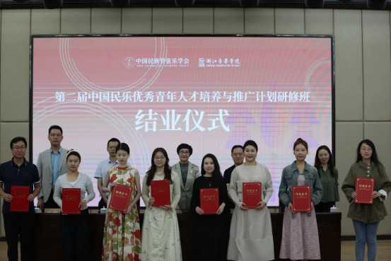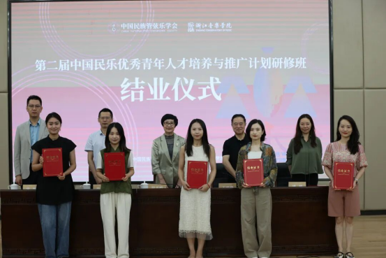 2025年9月25日,第二届“中国民乐优秀青年人才培养与推广计划”研修班在浙江音乐学院顺利结业。中国民族管弦乐学会会长吴玉霞,中国民族管弦乐学会指挥专业委员会会长王甫建,学会副秘书长宋阳、浙江音乐学院国乐系党总支书记、副主任李旭芳、副主任盛秧、副主任张咏音等领导专家和研修班学员共同出席。