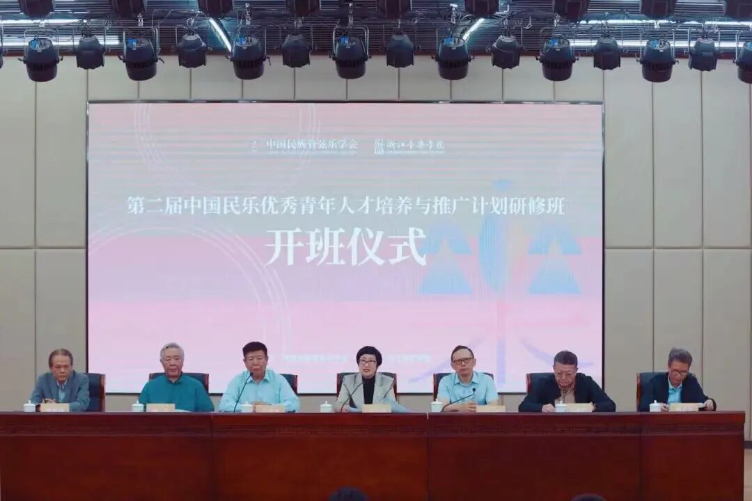 深入推进新时代青年人才工作,对于确保民乐艺术事业发展薪火相传、后继有人具有重要意义。由中国民族管弦乐学会主办,浙江音乐学院承办的第二届“中国民乐优秀青年人才培养与推广计划”于今年9月20-25日在浙江音乐学院隆重举办。本次人才培养研修班学员分布分别由中国民族管弦乐学会21个专业(艺术)委员会推荐代表,金钟奖、文华奖、国韵杯等重要赛事优胜者代表,音乐院校青年教师和艺术院团青年演奏家代表,以及中国民族管弦乐学会社会艺术水平考级优秀指导教师代表构成。研修班力求通过专家授课、音乐对谈、学术研讨、交流分享等多个教学环节以启发培养学生深入探研的能力,课程内容扎实,引导青年才俊以增强艺术人才的归属感、荣誉感和责任感。研修班期间,学会还组织召开纪念刘天华先生诞辰130周年学术专题研讨会,围绕刘天华先生的历史地位、创作实践、思想观念、乐器改革、教育体系构建,以及其艺术精神在新时代的传承与创新等核心议题,展开了全面、深入、多维的交流与探讨。