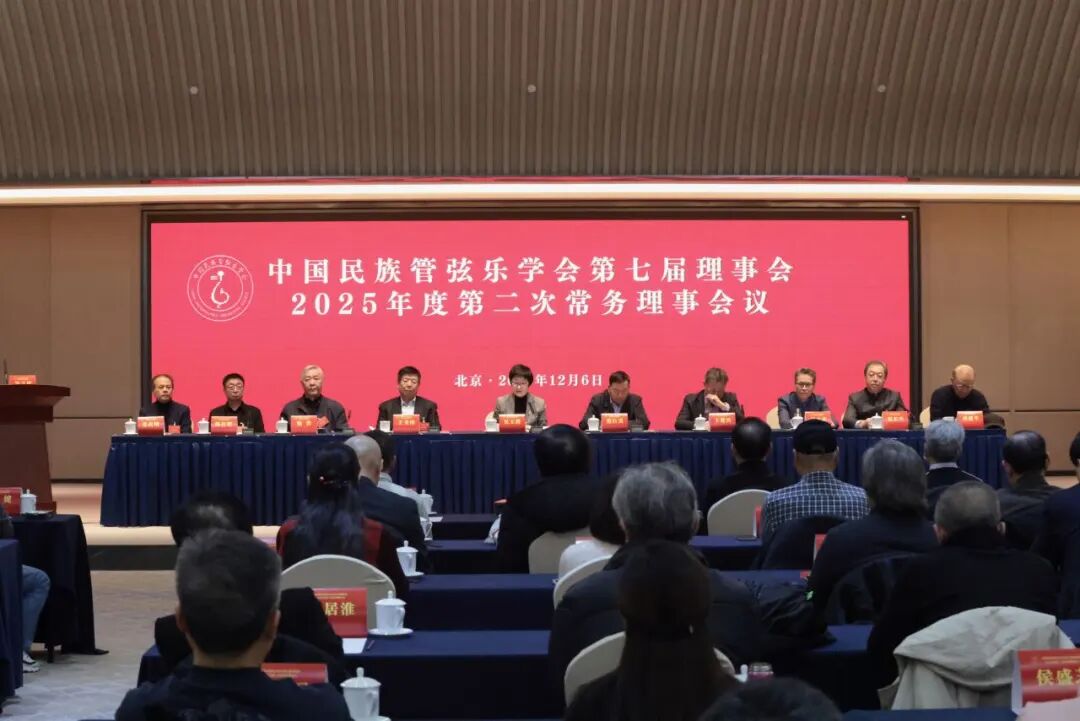 2025年12月6日上午,中国民族管弦乐学会第七届理事会2025年度第二次常务理事会议在京召开。文化和旅游部业务主管社会组织党建工作第一组指导员范巨灵、中国民族管弦乐学会会长吴玉霞、党支部书记王书伟、副会长王建民、杨青、胡志平、陈佐辉、唐建平、张高翔,副会长兼秘书长赵东升主持会议,会议另设线上会场,来自全国各地的常务理事出席会议。按照会议议程,吴玉霞会长作常务理事会议工作报告,并宣读中国民族管弦乐学会第八次全国会员代表大会暨第八届理事会换届工作领导小组构成。王书伟书记汇报文化和旅游部巡视组巡查中国民族管弦乐学会反馈意见及学会整改工作情况。王建民副会长宣读《关于修改